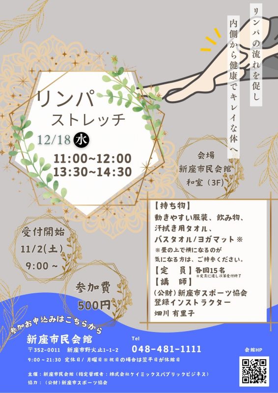 2024年11月6日(水), 11月13日(水), 11月20日(水), 11月26日(火)